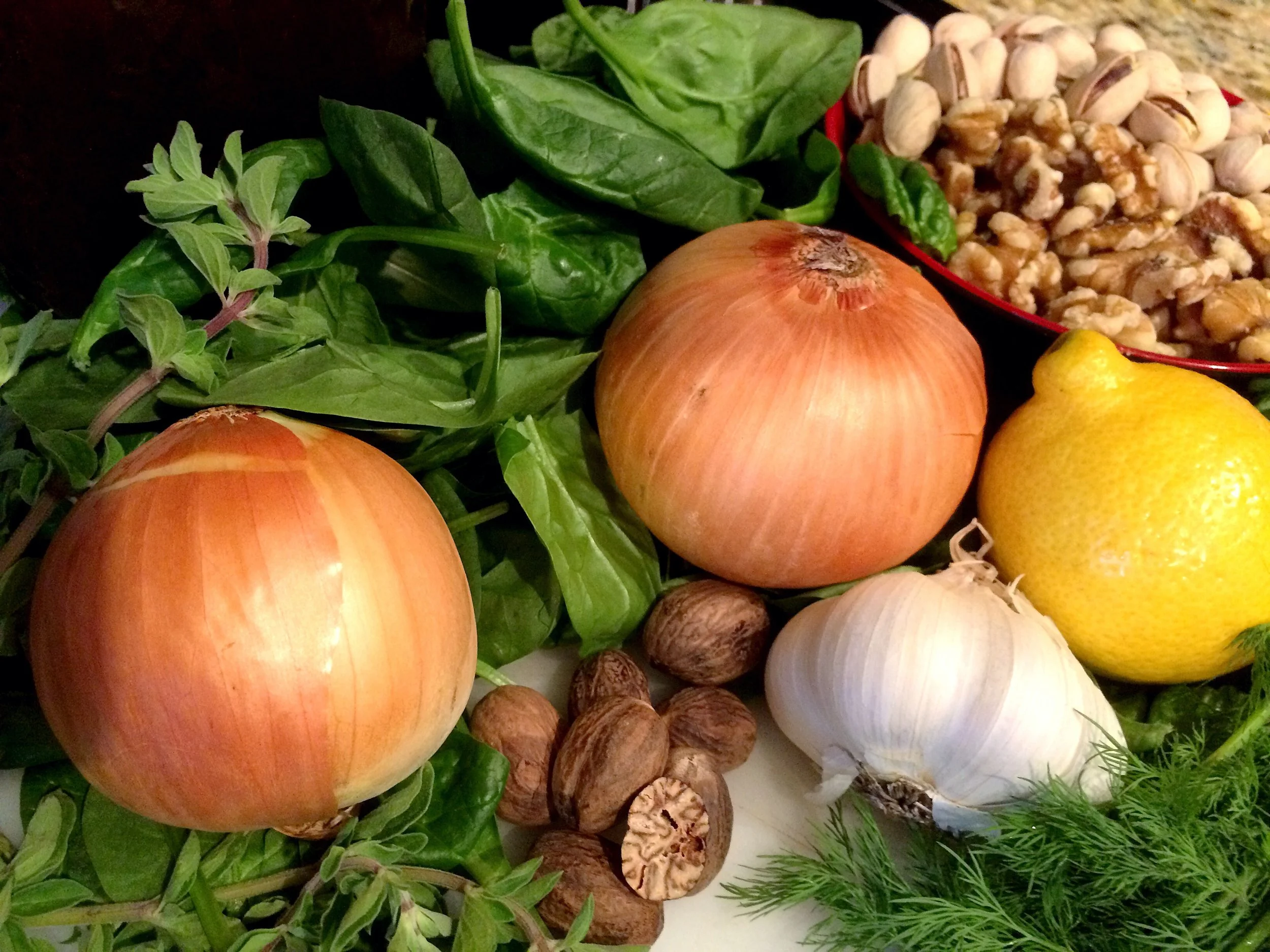 - Melt 1 tablespoon butter in a 12-inch heavy skillet over moderate heat, then cook spinach, stirring, until wilted and tender, about 4 minutes. Remove from heat and cool, about 10 minutes. Squeeze handfuls of spinach to remove as much liquid as possible, then coarsely chop. Transfer to a bowl and stir in feta, nutmeg, 1/2 teaspoon salt, and 1/2 teaspoon pepper.